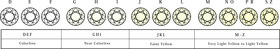 from the letter D, colorless, to the letter Z, light yellow. In general, the increasing of color in a diamond results in a decrease of its price.
